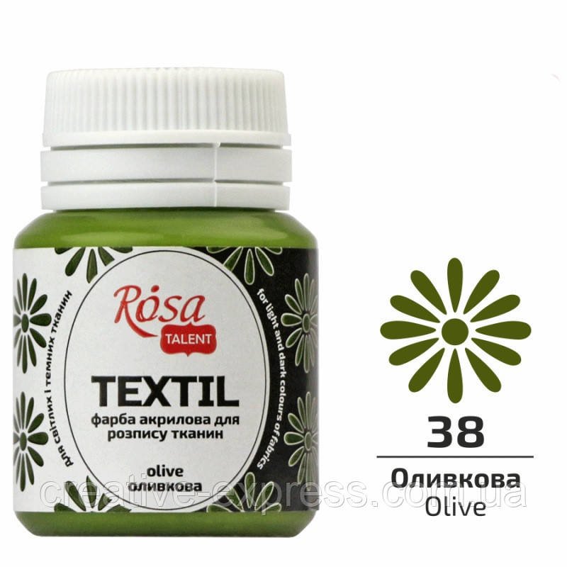 Фарба акрилова для тканин, Оливкова (38), 20 мл, ROSA TALENT