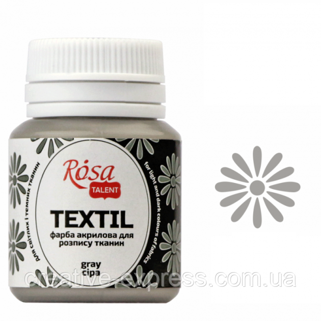 Головна Хоббі та декор Розпис по тканині та шовку Фарба акрилова для тканин, Сіра (40), 20мл, ROSA TALENT