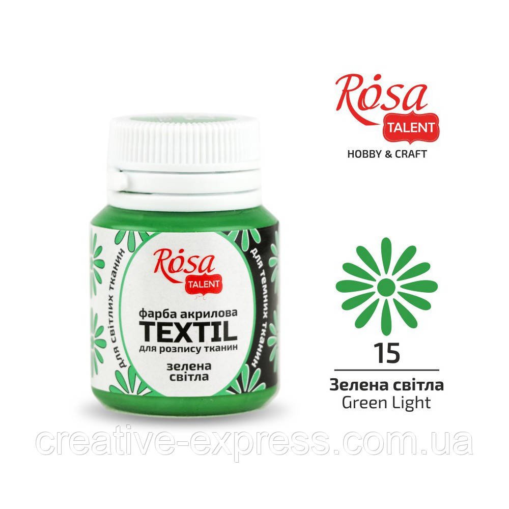 Фарба акрилова для тканин, Зелена світла (15), 20мл, ROSA TALENT