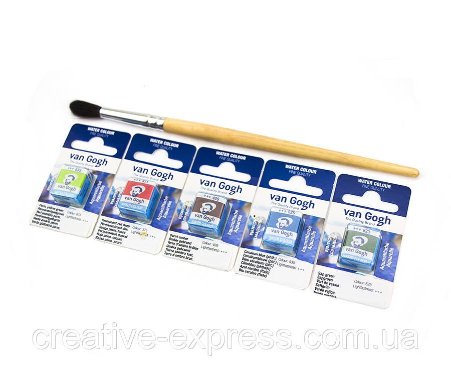 Акварель Van Gogh відрізняється яскравістю і інтенсивністю кольору. Вся палітра Van Gogh має високий ступінь світлостійкості – зберігає яскравість на протязі довгого періоду часу. Фарба легко лягає на папір, а завдяки чистоті пігменту їїкольори можна змішувати між собою, і при необхідності розмити, досягаючи тим самим потрібного ефекту. В результаті Ви можете досягати особливої виразності кольору.Гама: 40 кольорів у тубах по 10 мл; 40 кольорів у кюветахВиробник: “Royal Talens”, Нідерланди.