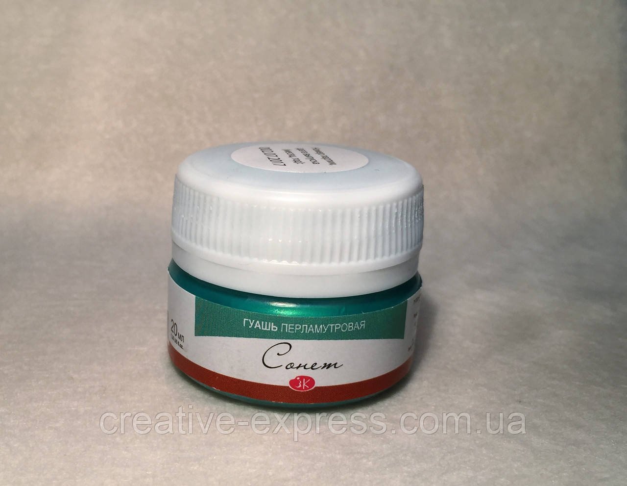 Фарба гуашєва перламутрова, Зелена, 20 мл, Сонет