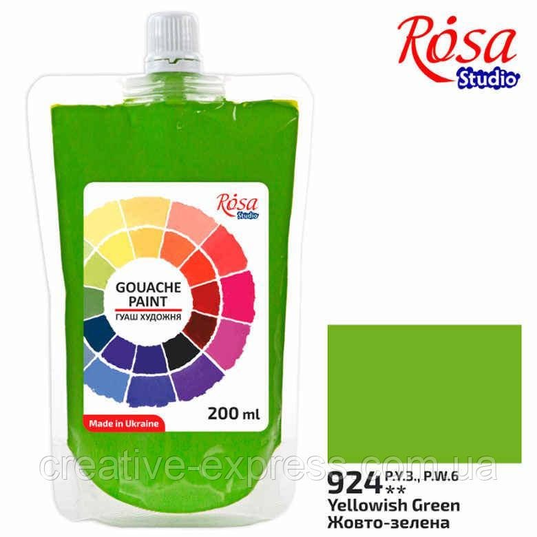 Фарба гуашева, Жовто-зелена, 200мл, ROSA Studio