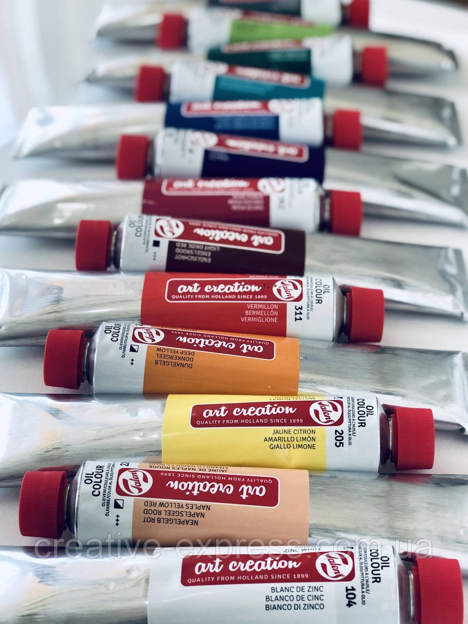 Фарби олійні “ArtCreation”ArtCreation – універсальні олійні фарби, що підходять для всіх технік олійного живопису. Фарби світлостійкі, чудово змішуються, після висихання зберігають форму мазка та не змінюють колір. Палітра: 36 кольорів у тубах 200 мл. та 40млВиробник: “Royal Talens”, НідерландиArtCreation
