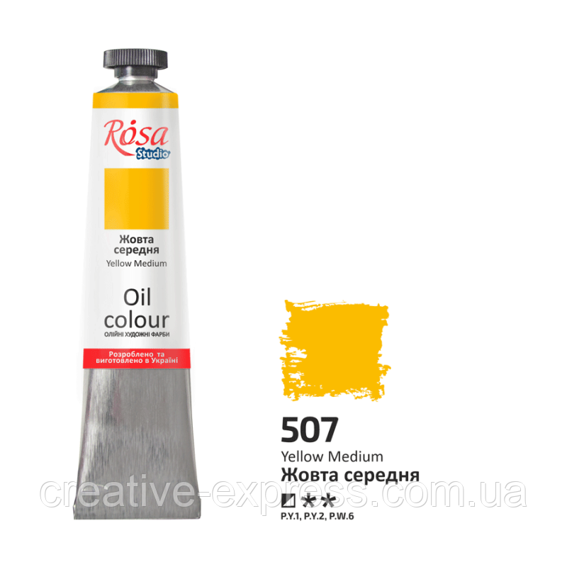 Фарба олійна, Жовта середня, 45мл, ROSA Studio