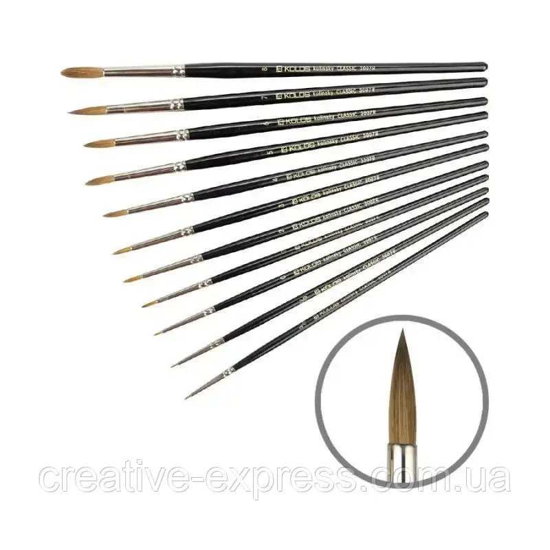 Головна Пензлі та мастихіни Пензлі з волосу колонка Колонок круглий, Classic 3007R, No8, к.р. пеньжель KOLOS