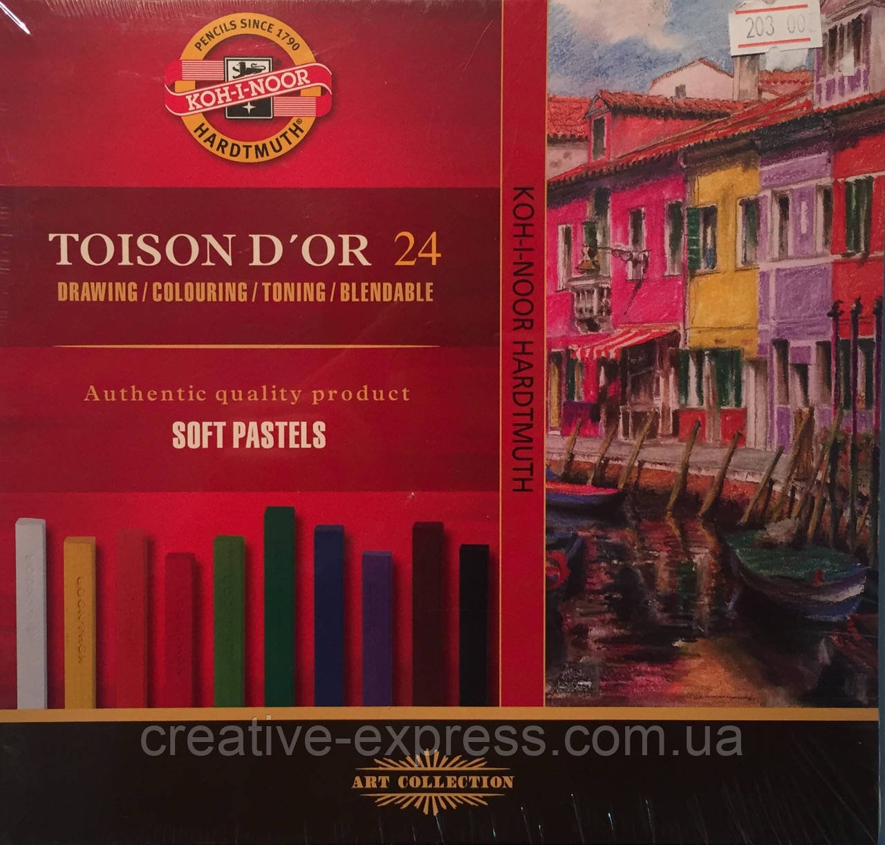 Сухі пастельні крейди “Toison d’or” soft відносяться до традиційної лінійці компанії Kooh-I-Noor і користуються великою популярністю серед художників. Ключовим елементом у складі Пастелі є тонко помелений карбонат кальцію або крейда, які у поєднані з іншими домішками з сполучними речовинами утворюють базову основу, в якій акуратно замішуються пігменти. Їх якість, стійкість дозволяє досягти чудові результати у роботі та довговічності художніх витворів .