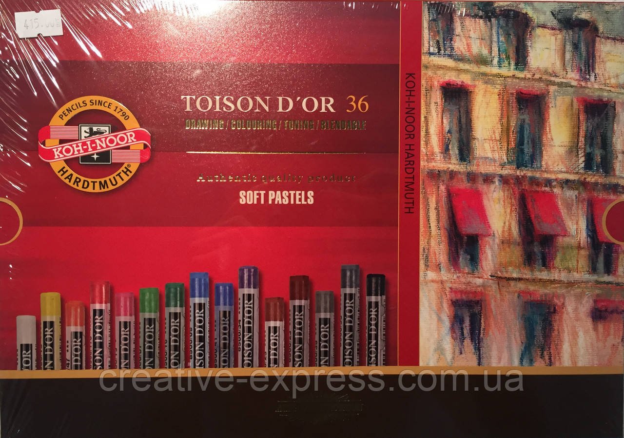 Сухі круглі пастельні крейди “Toison d’or” soft відносяться до традиційної лінійці компанії Kooh-I-Noor і користуються великою популярністю серед художників. Ключовим елементом у складі Пастелі є тонко помелений карбонат кальцію або крейда, які у поєднані з іншими домішками з сполучними речовинами утворюють базову основу, в якій акуратно замішуються пігменти. Їх якість, стійкість дозволяє досягти чудові результати у роботі та довговічності художніх витворів .