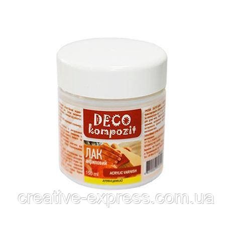 Лак акриловий DECO Kompozit 150 млГотовий до застосування водостійкий водно-дисперсійний акриловий лак. Добре витримує експлуатаційні навантаження, захищає від вологи і бруду, не жовтіє з часом.Призначений для лакування та декорування дерев’яна дерев’яних, мінеральних і інших поверхонь з підвищеними вимогами до міцності, волого-і зносостійкості всередині приміщень.