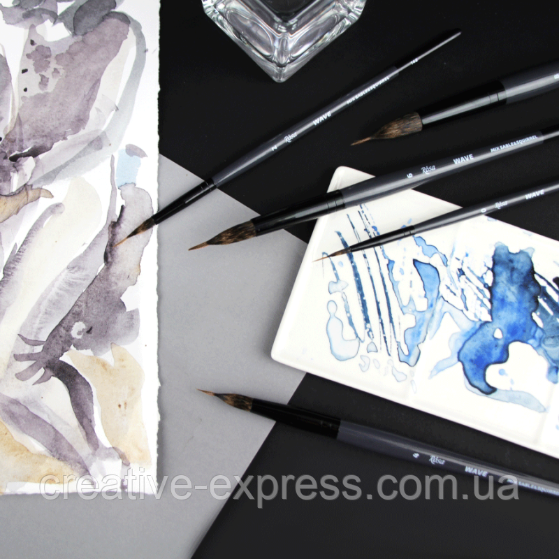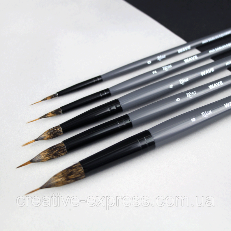 Круглі лайнери ROSAWAVE з міксу волоса білки і соболя перевершують очікування від кісті: м’яка білка добре вбирає і утримує воду, а соболь зберігає пружність серцевини. Вони дають можливість ретельно промальовувати прожилки, тичинки, волосся, шерсть тварин, штрихувати і підписувати роботи. М’яка який пучок з білки служити великим резервуаром для фарби, а виступаюча середня частина кисті з соболя подає її на папір. Це ідеальні кисті для проведення неймовірно довгих ліній однакової товщини. Основні характеристики кистей-мікс білки і соболя WAVE 148: – Форма: кругла, лайнер – Пучок з двох видів натурального волосся відмінно утримує воду і фарбу – Можна провести безперервну тонку лінію довжиною 160 см одним змочуванням – Для нанесення мазків складних форм: шрифтів, волосся, хвиль, пелюсток, трави – Номери: 0, 2, 4, 6, 8