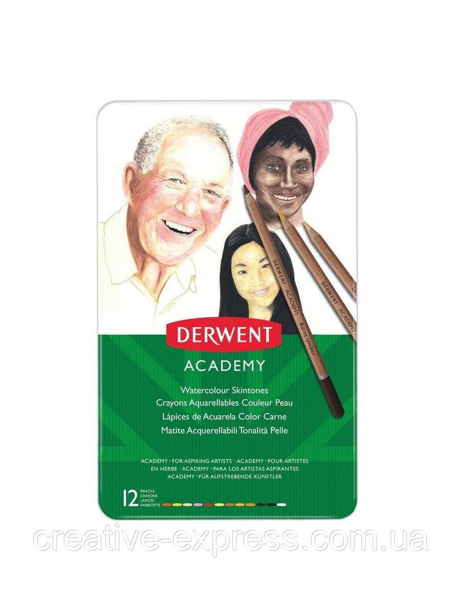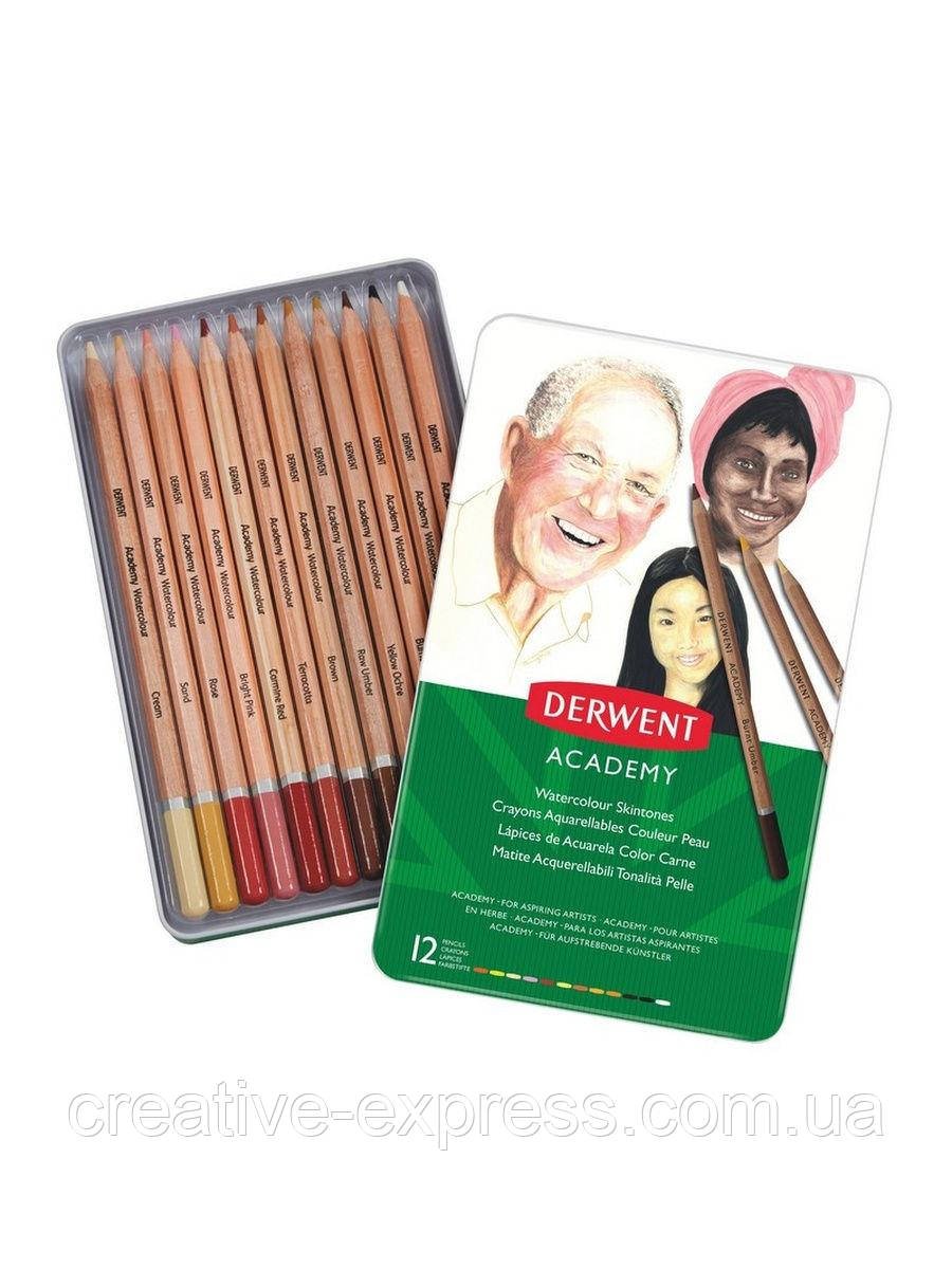 Набір акварельних олівців “Тілесні відтінки” Academy Watercolour , 12 кол., в метал. коробці, Derwen