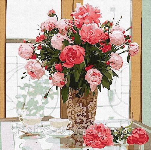 Набір для розпису по номерах. Букет “Улюблені рожеві півонії” 50х50см