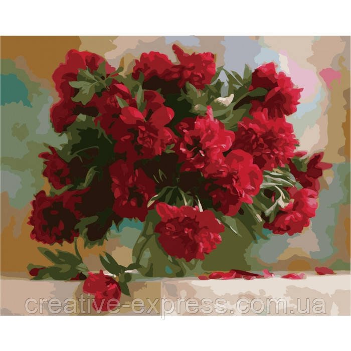 Картина за номерами – Червоні півонії для вашої творчості. Зроблено в Україні.