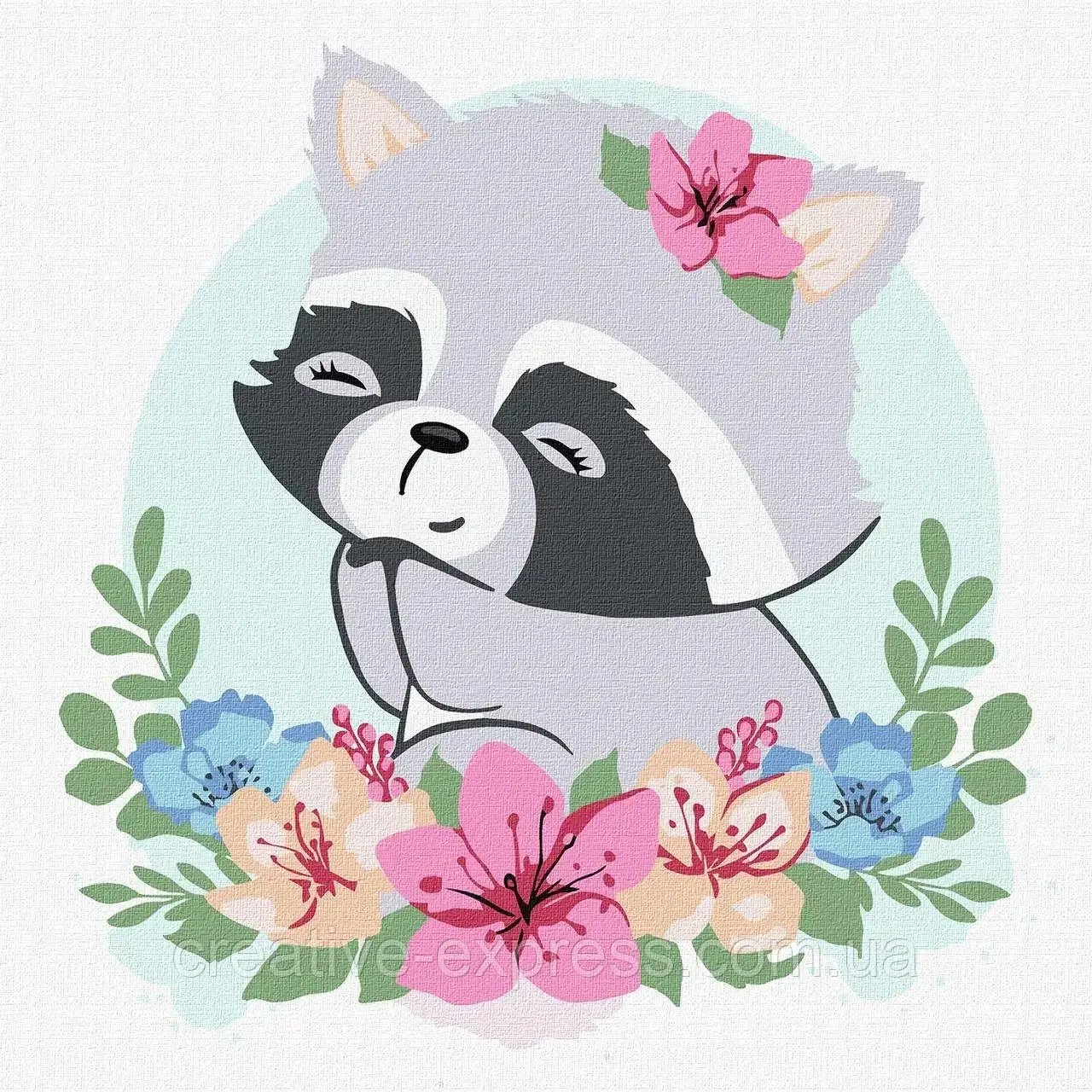 Набір для розпису по номерах. “Квітковий єнот” 30х30см