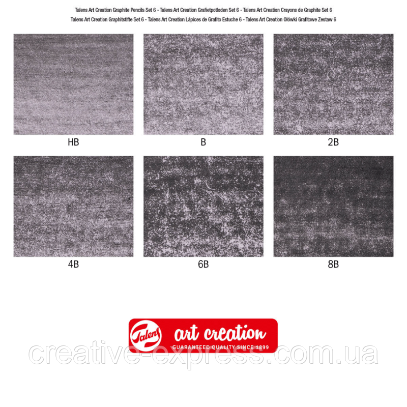 Чорнографітні олівці Art Creation призначені для школярів, студентів та початківців художників. Олівці підходять для скетчингу, малювання, креслення та записів. Діапазон твердості чорнографітних олівців цієї серії від 2Н до 9В. М’які олівці твердістю від НВ мають різну насиченість кольору. Корпус олівця проклеєний по всій довжині, що забезпечує високу стійкість олівців до зламу.