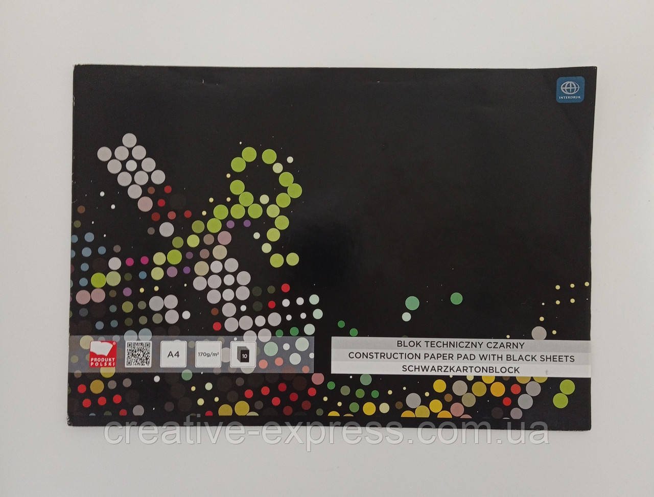 Набір картону чорні листи, А4, 10 арк.,170 г/м2, відр.лист., обкл.асорті /10/