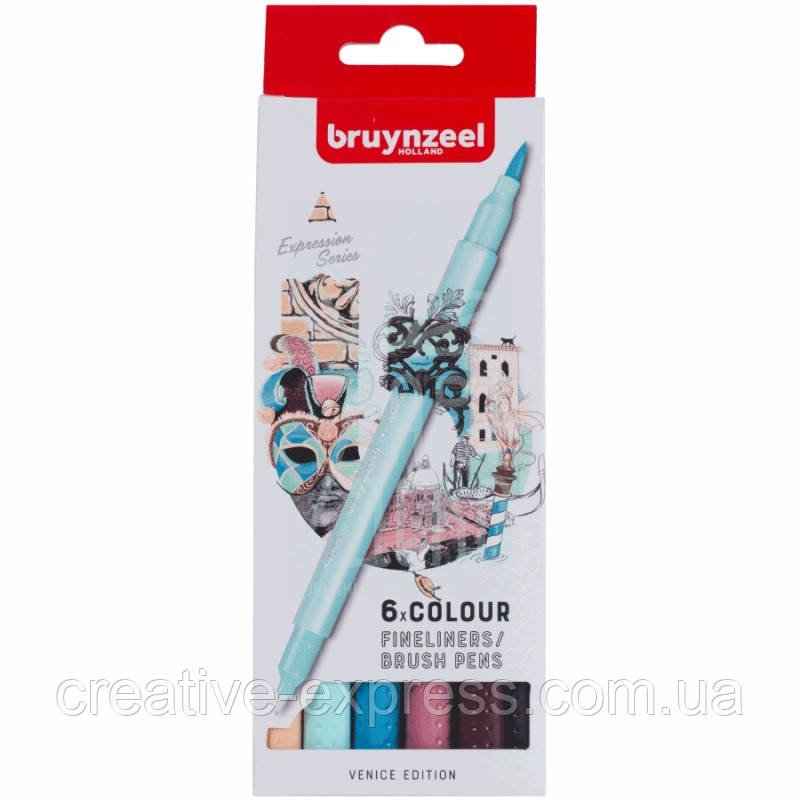 Головна Лінери та ручки Лінери Набір лінерів-пензлів BRUSHPEN Venice, двосторонні, 6кол., Bruynzeel