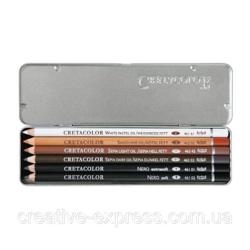 Набір оливкових олівців OIL PENCILS, 6 шт., метал.коробка, Cretacolor