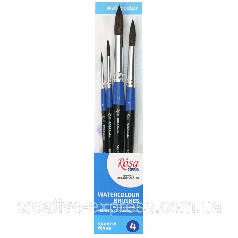 Набір пензлів 15, білка кругла, 4шт (№0,3,9,12), к.р., ROSA Studio