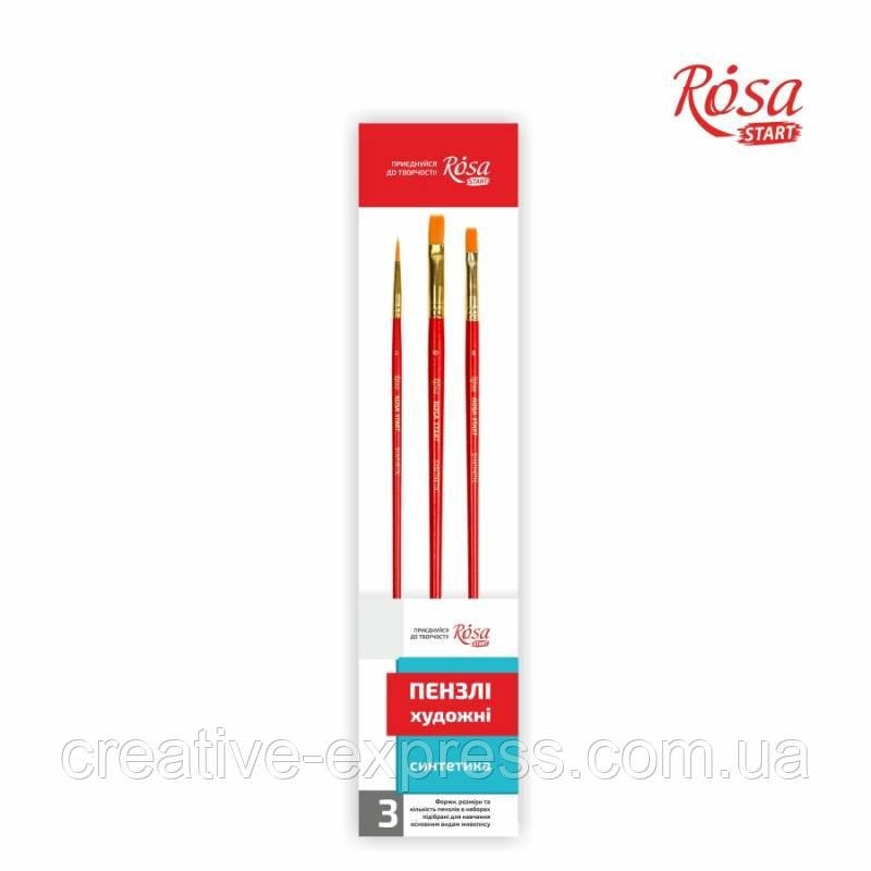 Набір пензлів 5, синтетика, 3шт, плоска (№ 8,10), кругла (№2), к. р., ROSA START