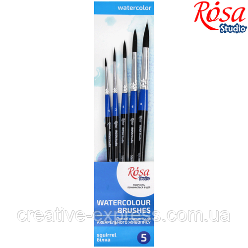 Набір пензлів 8, білка кругла, 5шт (№ 0,2,4,6,8), к. р., ROSA START