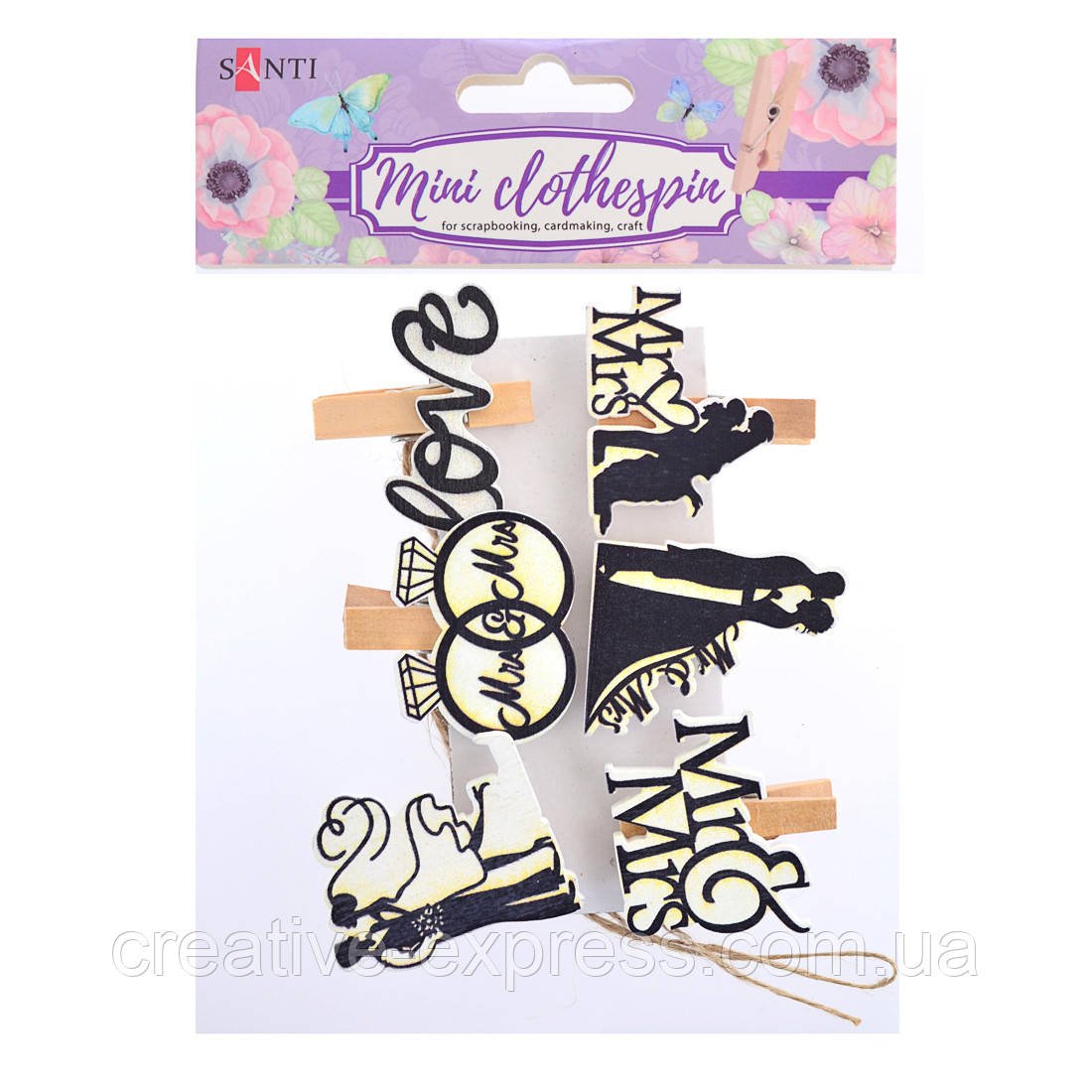 Декоративні прищіпки від Santi – універсальний елемент декору. З допомогою прищіпки можна прикрасити вечірку, дитяче свято, навіть весілля! Її можна використовувати одночасно і власник, і як яскравий і оригінальний акцент вашого оформлення. Прищіпки Santi виготовлені з натурального матеріалу, мають різні кольори і різноманітну тематику.