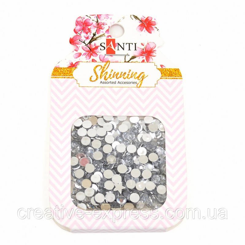 Набір страз круглих, багатогранних, білого кольору, 8 грам.