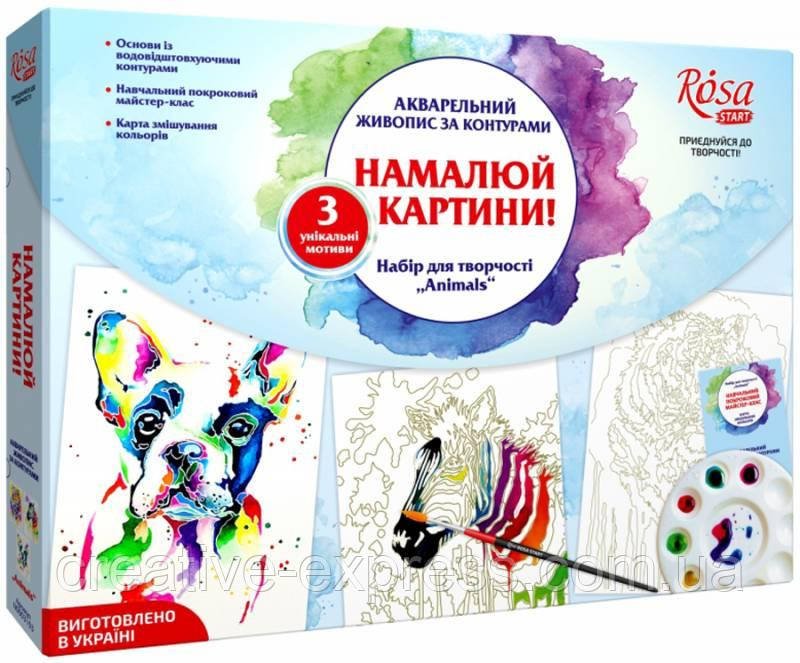 Набір, техніка акварельний живопис, “Animals”, ROSA START