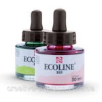 Фарба акварельна рідка, Ecoline TalensEcoline – рідка акварельна фарба готова до використання. Палітра включає 46 яскравих прозорих кольорів та два непрозорі – білий та золотий. Фарба гарно наноситься на папір та картон.Гама: 48 кольрів в банці 30 млВиробник: “Royal Talens”, Нідерланди