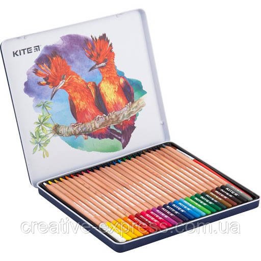 Олівці кол. аквар., 24 шт., мет. пенал Kite “Птахи”