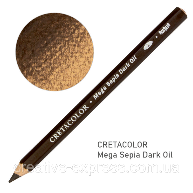 Професійний високоякісний олівець для рисунку MEGA відтінку Сепія олійна (світла та темна) від ТМ Cretacolor ідеально доповнює цілий спектр технік і дозволяє досягти неперевершеної художньої виразності. Має м’який блискучий штрих.