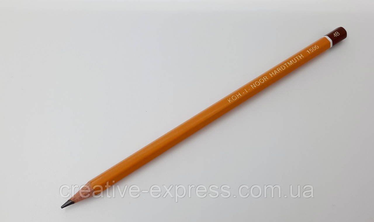 Легендарна серія 1500 олівців KOH-I-NOOR пізнавана у всьму світі по жовтому забарвленню. Корпус виготовляється з якісної деревини покритої лаком з міцним грифелем всередині. Серія олівців KOH-I-NOOR 1500 включає олівці різної твердості від самих м’яких 8B до самих твердих 10H для професійних художніх, креслярських і графічних робіт.Твердість – 4В