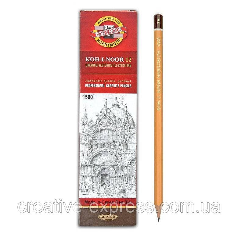 Олівець графітний KOH-I-NOOR 1500, 9Н Легендарний, відомий більш ніж в 82 країнах світу, «жовтий» олівець 1500 є традиційним символом витриманого класичного стилю і якості. Професійні креслярі і художники-графіки високо оцінять найширшу на українському ринку градацію твердості. Характеристики: – Деревина: кедр. – Твердість:F