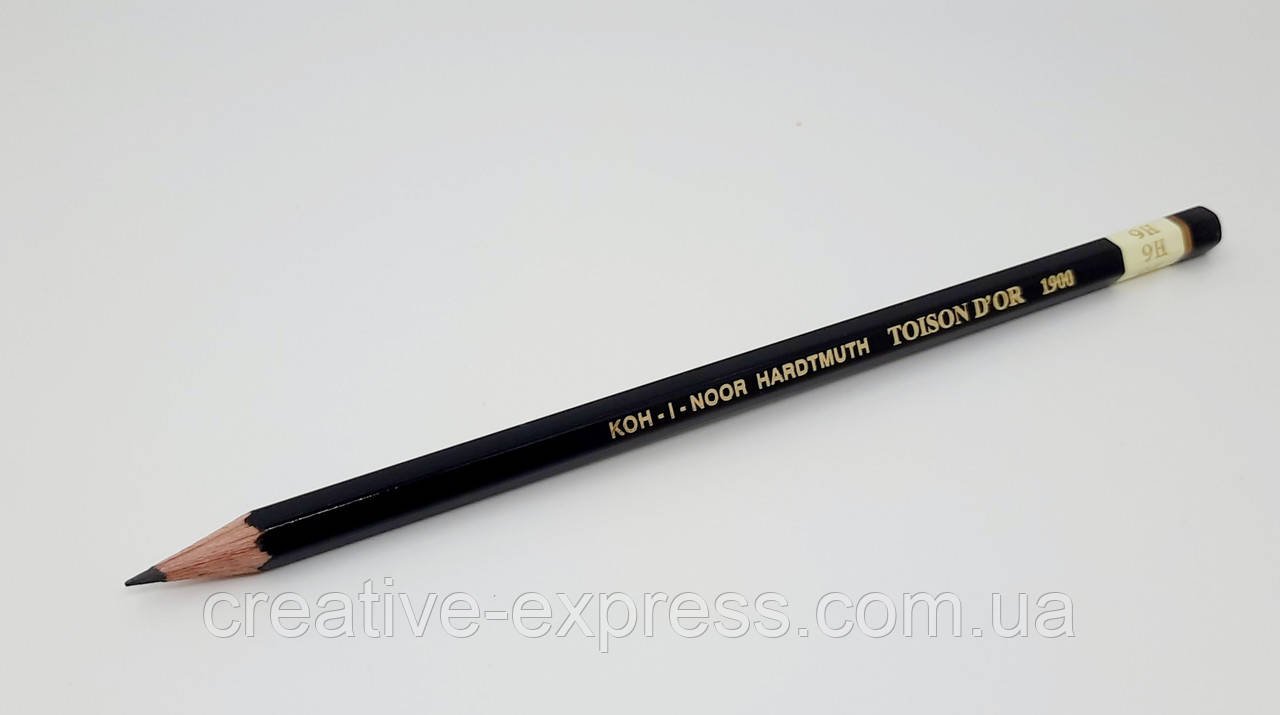 Олівець графітний. Міцний шестигранний корпус з високоякісної деревини (кедр), захищає грифель від ударів. Грифель надійно кріпиться до корпусу за допомогою еластичного дисперсного клею. Корпус легко заточується, не ламається. Твердість 9H. Строгий і стильний дизайн корпусу виконаний у чорному кольорі. Довжина корпусу 175 мм, товщина грифеля 2-2,5 мм. Олівець підходить для креслярських і художніх робіт.