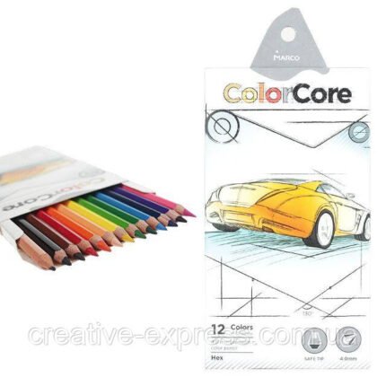 Олівці 12 кольорів шестигранні d=4.0+1 графітний НВ , ColorCore (new), Marco