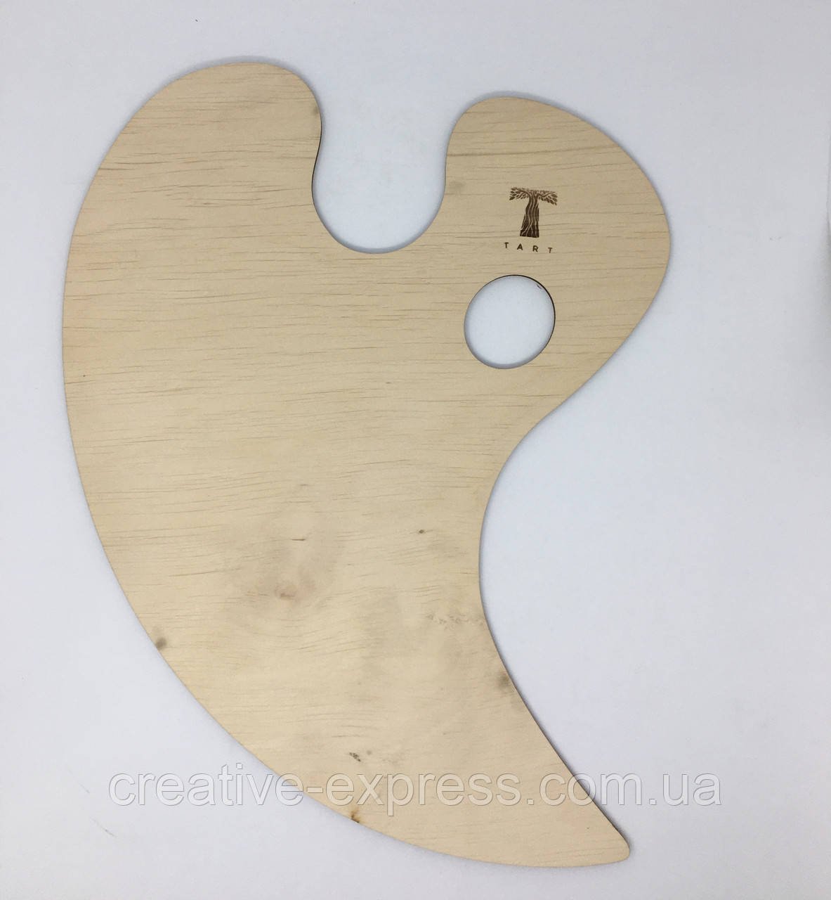 Палітра дерев’яна яна – легка та комфортна, ідеально підходить для роботи масляними і акриловими фарбами. Під час роботи зберігає баланс та має отвір для великого пальця овальної форми. Матеріал – ДВП,