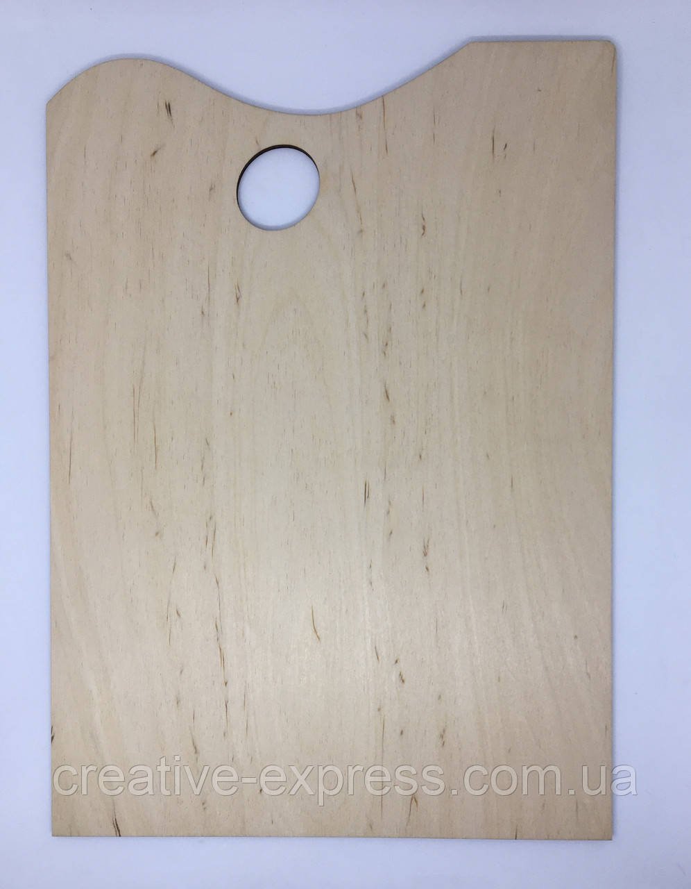 Палітра дерев’яна яна – легка та комфортна, ідеально підходить для роботи масляними і акриловими фарбами. Під час роботи зберігає баланс та має отвір для великого пальця овальної форми. Матеріал – ДВП