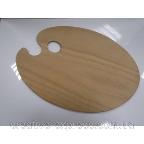 Палітра дерев’яна яна – легка та комфортна, ідеально підходить для роботи масляними і акриловими фарбами. Під час роботи зберігає баланс та має отвір для великого пальця овальної форми. Матеріал – ДВП, прогрунтована з одного боку, завдяки чому фарба не проникає в поверхність палітри.