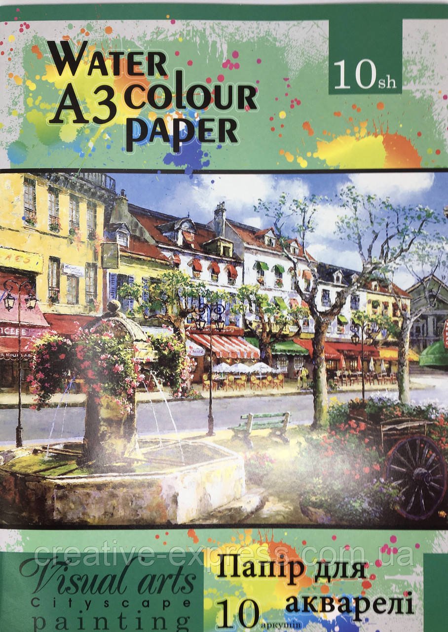 Папір для акварелі А3 10 аркушів у папці (200г/м2) ПА3210