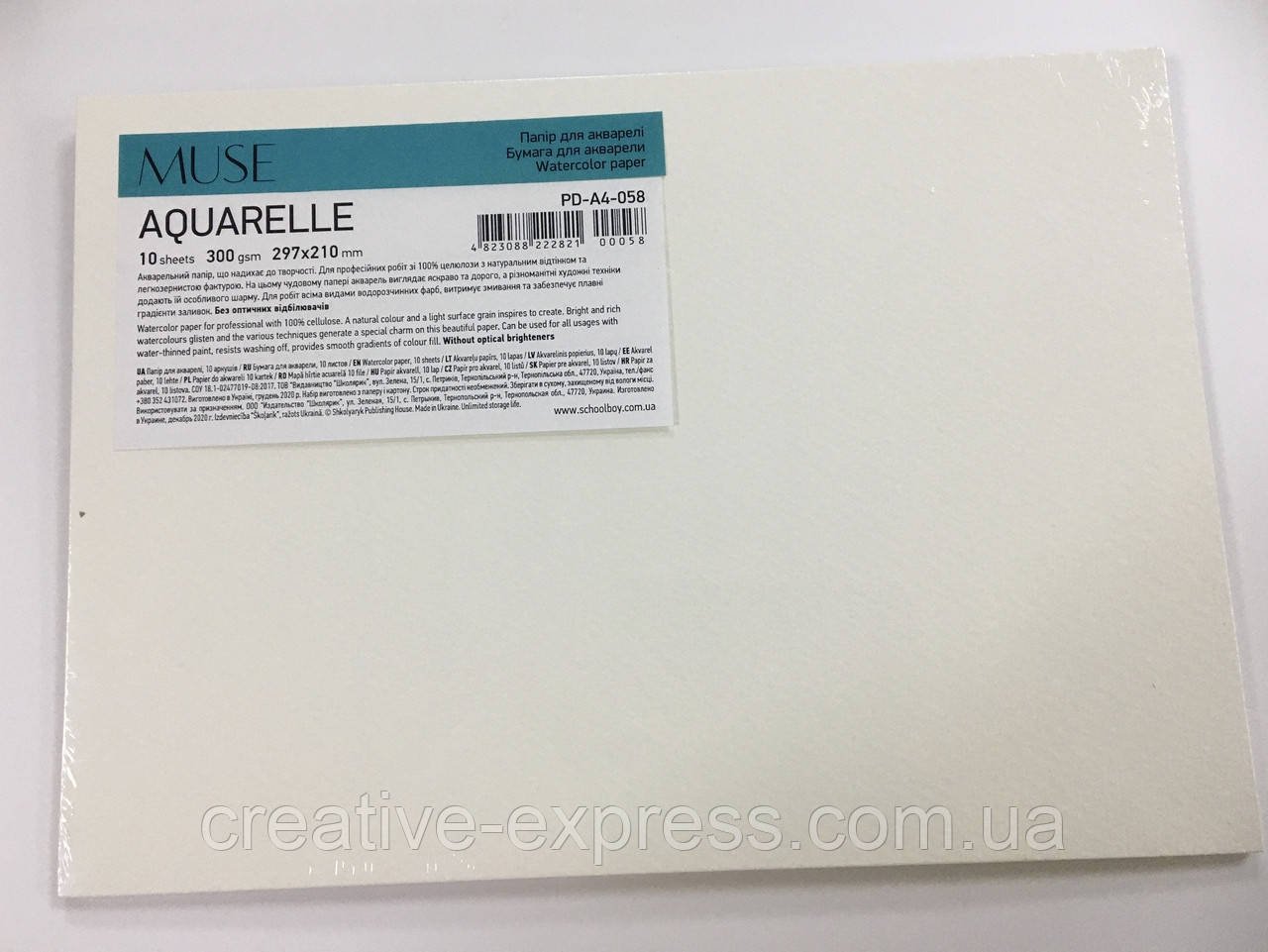 Папір для акварелі, А4+/10арк., 300г/м2, термозбіжна плівка