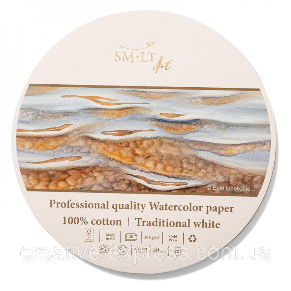 Папір для акварелі PRO CREATE Round 16см, 300г/м2, 20л, білий папір, SMILTAINIS