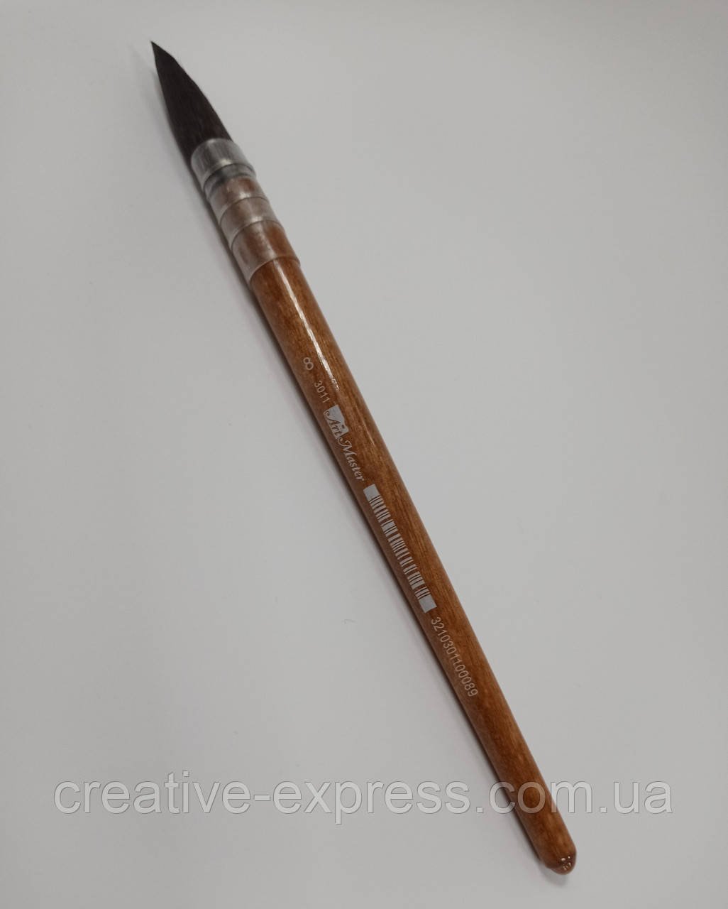 Пензліі серії 3011 в плівковій обоймі, так звані “французькі” акварельні кругліп пензлі. Особливістю є те, що вони збираються вручну, що дозволяє зробити більш якісну форму пучка. Традиційно волосся білки – один з кращих матеріалів для виготовлення художніх пензлів. Він еластичний, на який, прекрасно зберігає форму пучка. При намоканні ворс пензля збирається в пучок з тонким кінчиком, що дозволяє провести тонку лінію. Ворс дуже м’яка який, тому необхідно дбайливо ставитися до інструменту. Обов’язково добре вимивати після роботи, скупчення фарби на пучка і всередині обойми сильно погіршують робочий стан пензлика. Пензлі серії 3011 круглі, мають коротку дерев’яна яну ручку, покриту водовідштовхувальним лаком і плівкову обойму. Завдяки досить довгого ворсу пензлик можна використовувати і як інструмент для каліграфії.