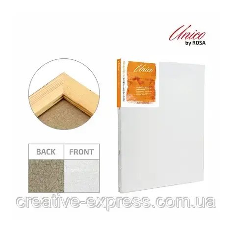 Полотна на підрамнику Unico бавовна (боковий натяг) виготовляються в розмірах від 20х20см до 60х80см з інтервалом в 5см.