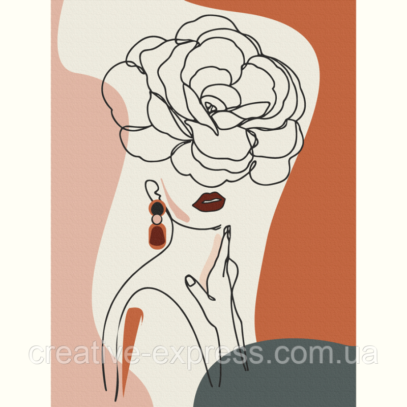 Полотно на картоні з контуром, „Floral Girl 2“, 30х40, бавовна, акрил, ROSA START