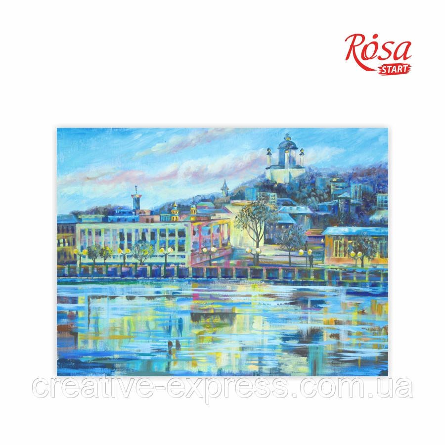 Полотно: 100% бавовна, дрібне зерно. Проклейка: желатинова, три шарі. Грунт: акриловий, три шарі. Основа: ДВП, товщина 3мм. Упаковка: захисна плівка