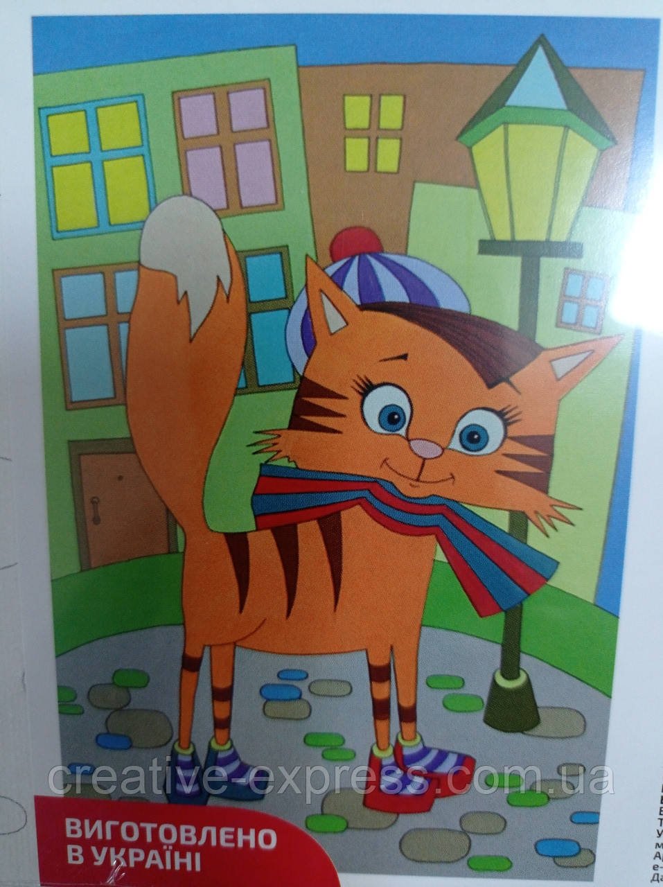 Полотно на картоні з контуром, Мультфільм №28, «Кіт на прогулянці», 20*30, бавовна, акрил, ROSA