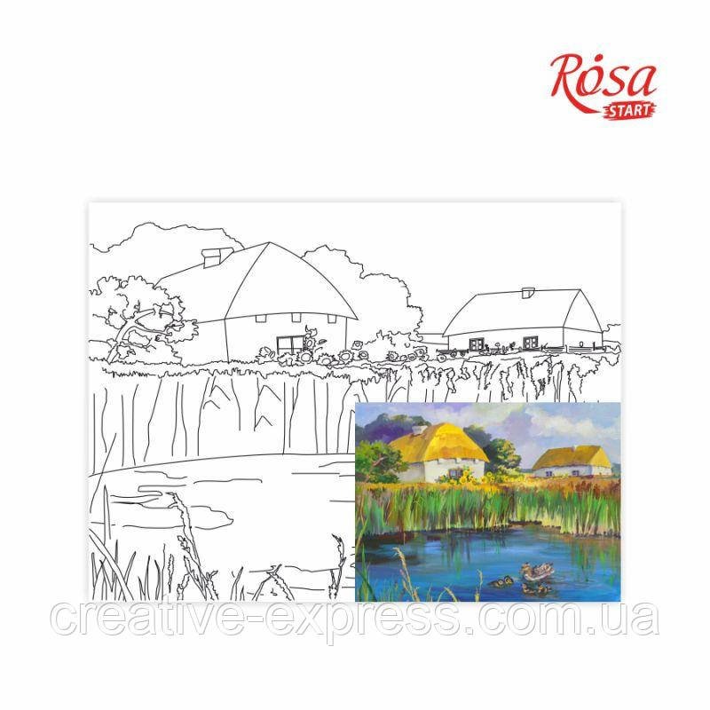 Полотно на картоні з контуром, Пейзаж №18, «Українське село», 30*40, бавовна, акрил, ROSA Talent