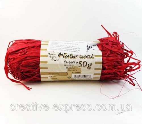 Рафия – це волокно, яке виробляється з листя деяких видів пальм. Рафія висушується за спеціальною технологією. Після висихання рафия набуває світлий кремовий колір, інші кольори отримують методом наступного фарбування. Рафія, представлена під брендом FOLIA, випускається різних кольорів в мотках по 50 грам.