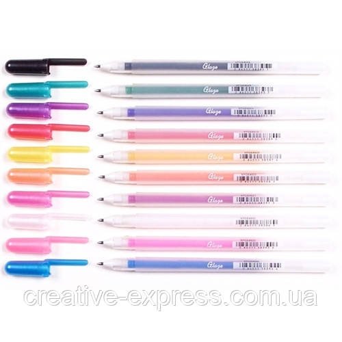 Гелеві ручки Gelly Roll Glaze 3D – ручки з 3D-ефектом – незамінні ручки для творчості. Написи і малюнки, зроблені цими ручками, опуклі, мають білі виражену текстуру, яку легко побачити і відчути, якщо провести по написаному кінчиками пальців. Характеристики: • Розмір наконечника – 0,7 мм (лінія) / 1,0 мм (розмір пишучого вузла) • Після нанесення залишити висихати на 2-3 хвилини, повне висихання – 10 хвилин • Готові роботи блищать на світлі, як ювелірна емаль або вітражна мозаїка • Чорнило течуть плавно, створюючи рівні чіткі лінії • Водостійкі і стійкі до вицвітання на багатьох поверхнях (за винятком чорних блискучих поверхонь) • Не скочуються, не розтушовуються і не проступають на більшість типів паперу • Підходять для паперу, глянцю, картону, пергаменту, пінопласту, дерева, пластику, кераміки і текстурних поверхонь • Чорнило на водній основі, без запаху, не токсичні • Всі ручки Sakura мають маркування інституту ACMI, що означає відсутність у складі чорнила шкідливих речовин • Краще ручки підходять для світлих (білих, кремових, світло-блакитних і т. д.) гладких, непористих поверхонь • Ручками можна писати і малювати по різних поверхнях: – По склу – По металу – По пластиці – По кераміці – По тканині (батік)