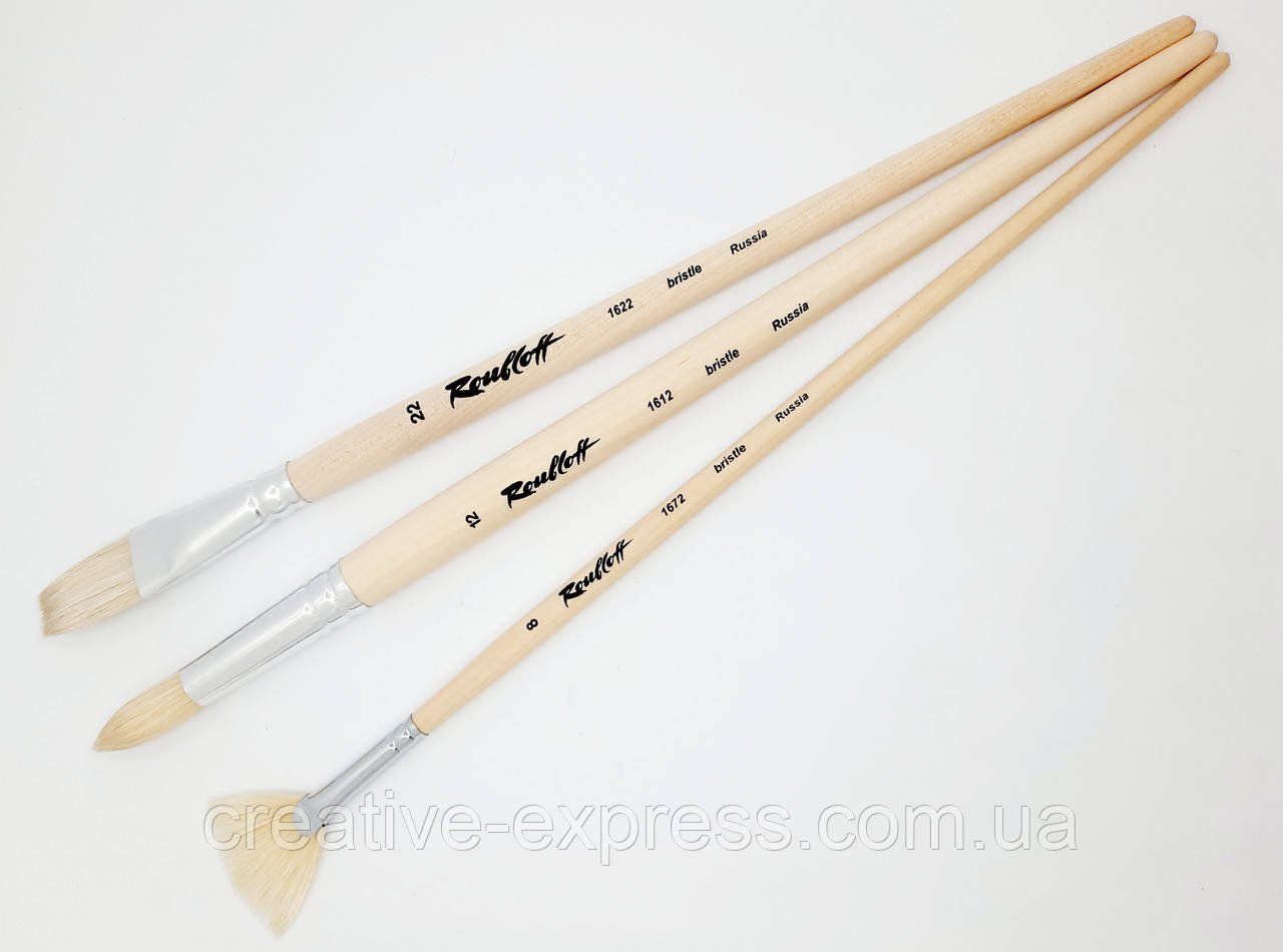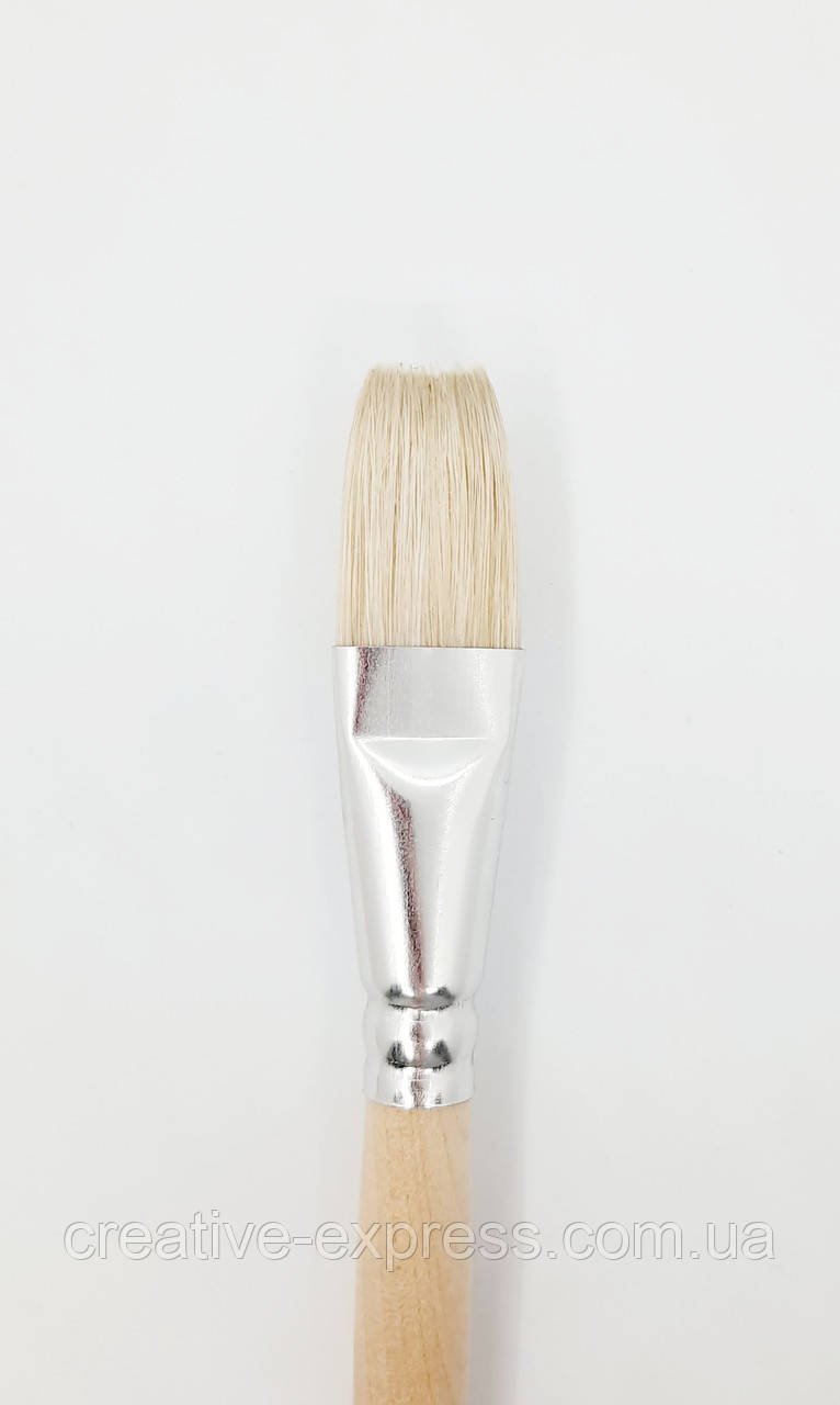 Кисть з щетини плоска з довгою ручкою для живопису – виготовляються з натурального свинячого волоса. Дуже добре підходять для роботи олійними, темперними та акриловими густими фарбами. Якщо починаючому художникові необхідно оволодіти базовими навичками, то кисті з щетини це кращий вибір. Вони роблять структурні чіткі мазки. Професійні художники також цінують такі кисті за високу пружність, зносостійкість, легкість в роботі. І початківці і профі оцінять також невисоку ціну.