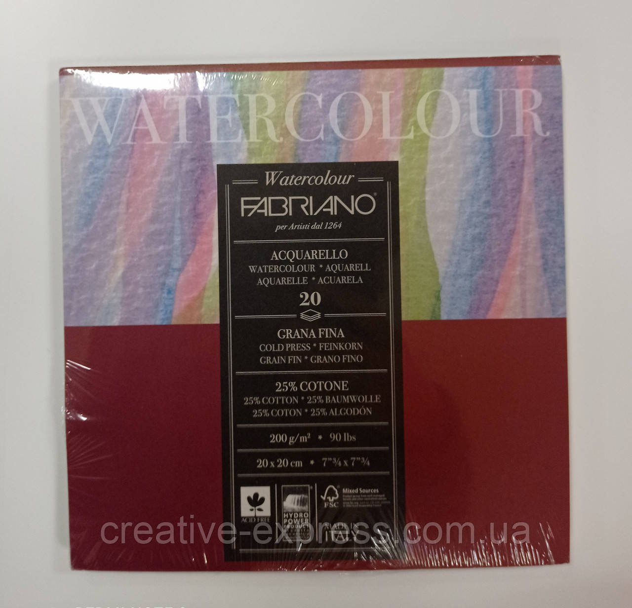 Склейка-блок для акварелі Watercolour (20х20см), 200г/м2, 20л, середнє зерно, Fabriano